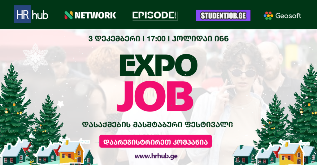 HR hub-ის ორგანიზებით, 3 დეკემბერს 17:00 – 19:00 თბილისში, ჰოლიდეი ინნში (26 მაისის ოედანი N1) დასაქმების მასშტაბური ფესტივალი გაიმართება, სადაც წარმოდგენილი იქნება დამსაქმებლის ბრენდები და აქტიური ვაკანსიები.
