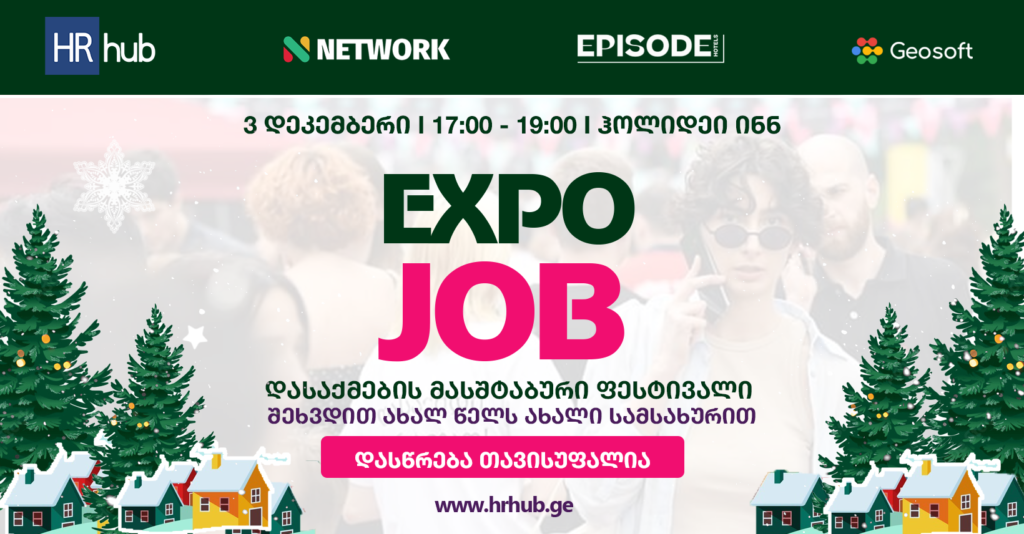 HR hubის ორგანიზებით, 3 დეკემბერს, სასტუმრო ჰოლიდეი ინნში (26 მაისის მოედანი N1), 17:00-19:00 სთ-ზე წინა საახალწლოდ, ყოველწლიური დასაქმების ფესტივალი გაიმართება, სადაც წარმოდგენილი იქნება დამსაქმებლის ბრენდები აქტიური ვაკანსიებით.