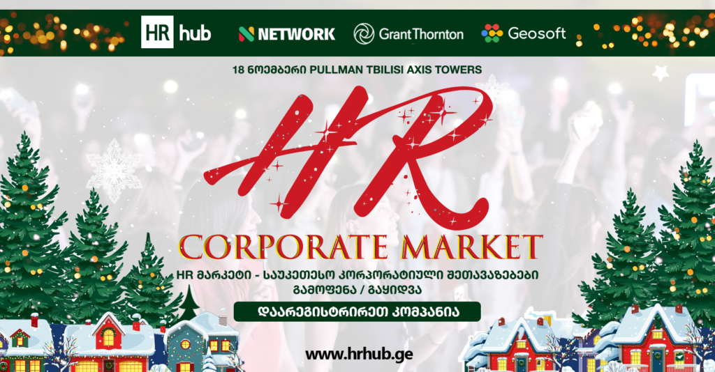 HR hub-ის ორგანიზებით, 18 ნოემბერს, 16:00სთ-დან სასტუმრო Pullman Tbilisi Axis Towers – ში, ყოველწლიური “HR კორპორატიული მარკეტი” გაიმართება.