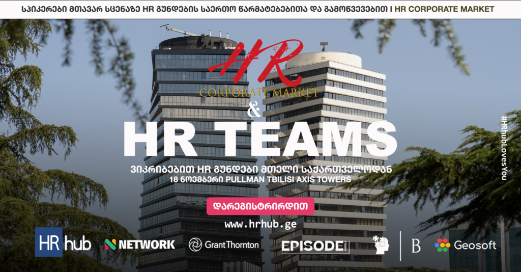 HR hub-ის ორგანიზებით 18 ნოემბერს, 16:00სთ-დან სასტუმრო Pullman Tbilisi Axis Towers – ში (ილია ჭავჭავაძის 37მ), ღონისძიება ,,HR TEAMS” და საახალწლო HR მარკეტი ჩატარდება.